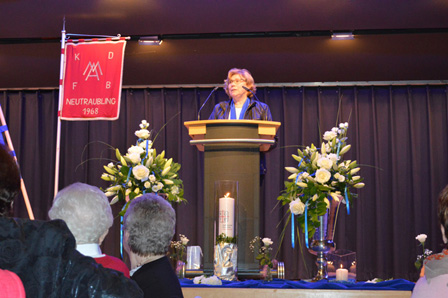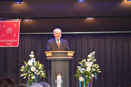 Grußworte und Glückwünsche überbrachten Pater Seitz, Pfarrer Weindl, Frau Hüttinger und Bürgermeister Kiechle. All den Grußworten war zu entnehmen, dass sich der Zweigverein Neutraubling einen Platz im kirchlichen und öffentlichen Leben geschaffen hat und dort auch wahrgenommen und anerkannt wird.