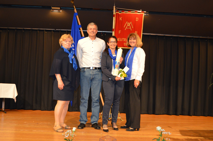 Höhepunkt war die Ehrung von Mitgliedern für 25 Jahre, 40 Jahre und 50 Jahre Zugehörigkeit zum Verein. Leider waren nicht alle Jubilarinnen anwesend, die Mitgliedsnadel wird ihnen jedoch nachgereicht. Die Ehrungen übernahmen Geistl. Diözesanbeirat Dr. Jakob Seitz und Bezirksvorsitzende Edith Hüttinger. Eine Silberne Mitgliedsnadel für 25jährige Mitgliedschaft erhielten Inge Dirlmeier und Marlene Wels. Ausgezeichnet mit der Mitgliedsnadel in Gold für 40jährige Mitgliedschaft wurden Marlies Endler, Waltraud Hölzl, Magdalena Kneissl und Maria Raith. Sieben Mitglieder waren seit Gründung des Vereins dabei und wurden mit der Mitgliedsnadel in Gold mit Stein für 50jährige Mitgliedschaft ausgezeichnet: Eva Baumstark, Hannelore Feige, Maria Fritsche, Maria Heller, Martha Kirchberger, Anna Stadler und Sophie Stadler. Alle Geehrten erhielten außerdem eine Rose mit einer Einladung ins Frauenbundcafé.