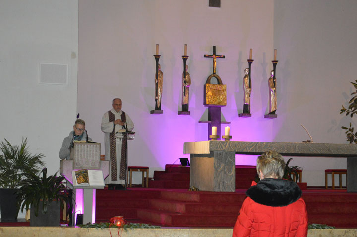 Die Pfarrkirche St. Michael konnte man während des Adventsgottesdienstes in stimmungsvoller Beleuchtung bestaunen. Pfarrer Weindl feierte mit den anwesenden Mitgliedern eine besinnliche Messe. Das Liturgie-Team übernahm dazu die Vorbereitungen,