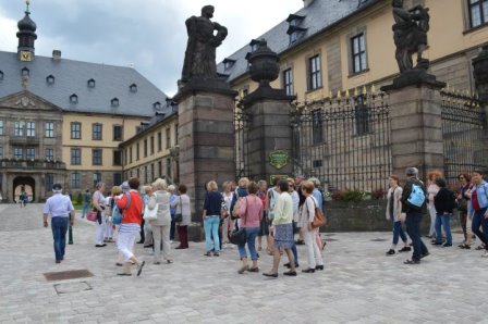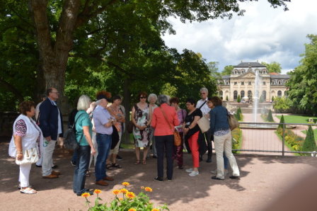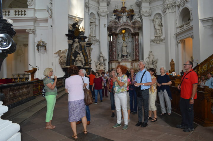 Viele nutzten am Sonntag nach einem exzellenten Frühstück die Möglichkeit, am Gottesdienst im Dom mit Bischof Algermissen teilzunehmen, bevor eine Führung durch das Schloss und den Schlossgarten begann. Das barocke Stadtschloss wurde von Johann Dientzenhofer erbaut. Heute ist in Teilen davon die Stadtverwaltung untergebracht. Viele der historischen Räume können besichtigt werden und befinden sich nahezu im Originalzustand. Der Schlossgarten ist eine beliebte Oase im Herzen der Stadt. Er zeigt eine gelungene Kombination von barocken Gestaltungselementen und freien Akzenten eines englischen Landschaftsgartens.