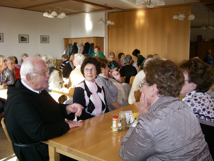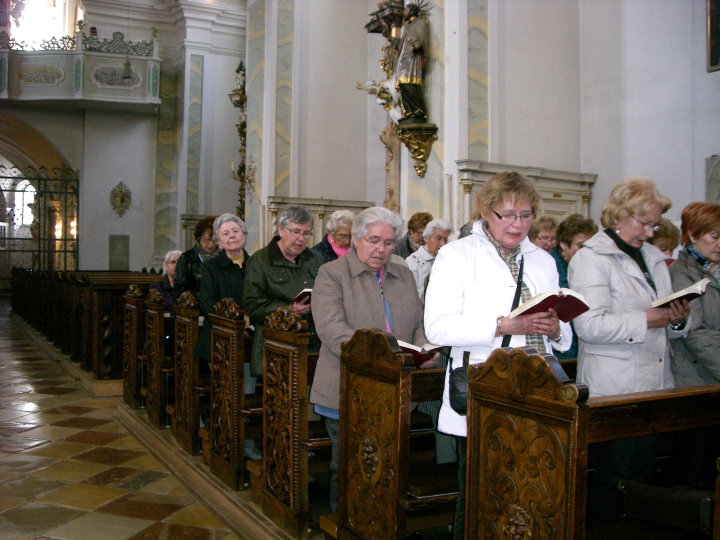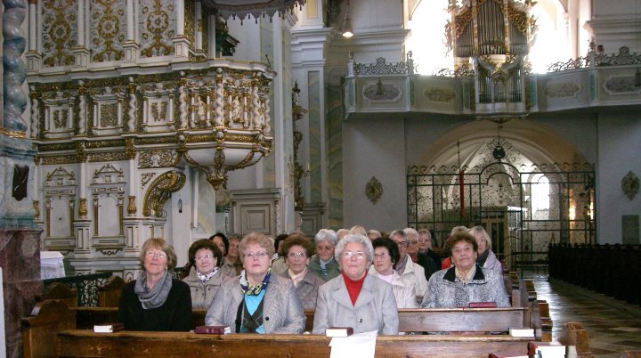 Restlos ausgebucht war wieder die Rosenkranzwallfahrt, zu der der Kath. Frauenbund jedes Jahr auch die Senioren einlädt. Mit dem vollbesetzten Happacher-Bus, in dem bereits auf der Fahrt der „Lichtreiche Rosenkranz“ gebetet wurde, ging es nach Mallersdorf in die Klosterkirche St. Johannes. Dort wurden die Damen schon von Altabt Emmeram Geser erwartet, um gemeinsam Gottesdienst zu feiern. Bei der Begrüßung erinnerte dieser sich an seine Kinderzeit, die er im Umfeld von Neutraubling verbracht hatte. Nach der Messe erzählte eine Schwester aus Mallersdorf mit Begeisterung über die Entstehung des Klosters und erklärte viele Details der Klosterkirche, die im Barockstil ausgestattet ist. Im Klosterbräustüberl fand der Nachmittag bei Kaffee und Kuchen bzw. einer Brotzeit noch einen gemütlichen Abschluss.