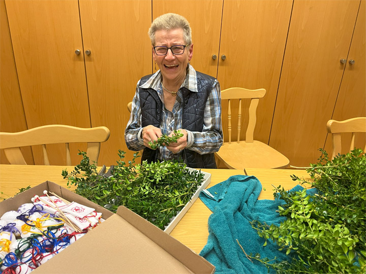Die Frauengruppe hält diesen Brauch aufrecht und hat 130 Kräuterbuschen gebunden dazu über 60 Lavendel- Herzen -Säckchen und Lesezeichen genäht, die nach den Gottesdiensten in der Pfarrkirche gegen eine Spende verteilt wurden.