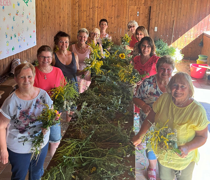 Das Ritual der Kräuterweihe fand am 14./15.August in unserer Pfarrkirche statt. Den gesegneten Buschen wird eine verstärkte Heilkraft nachgesagt. Ein Kräuterbund muss mindestens sieben Kräuter enthalten, wie z.B. Lavendel, Rainfarn, Spitzwegerich, Schafgabe, Thymian, Rosmarin, Salbei, Minze, Basilikum, Arnika, Kamille, sowie verschiedene Getreidesorten. Diese werden getrocknet, zu Hause aufgehängt und sollen vor Unglück und Krankheiten schützen.