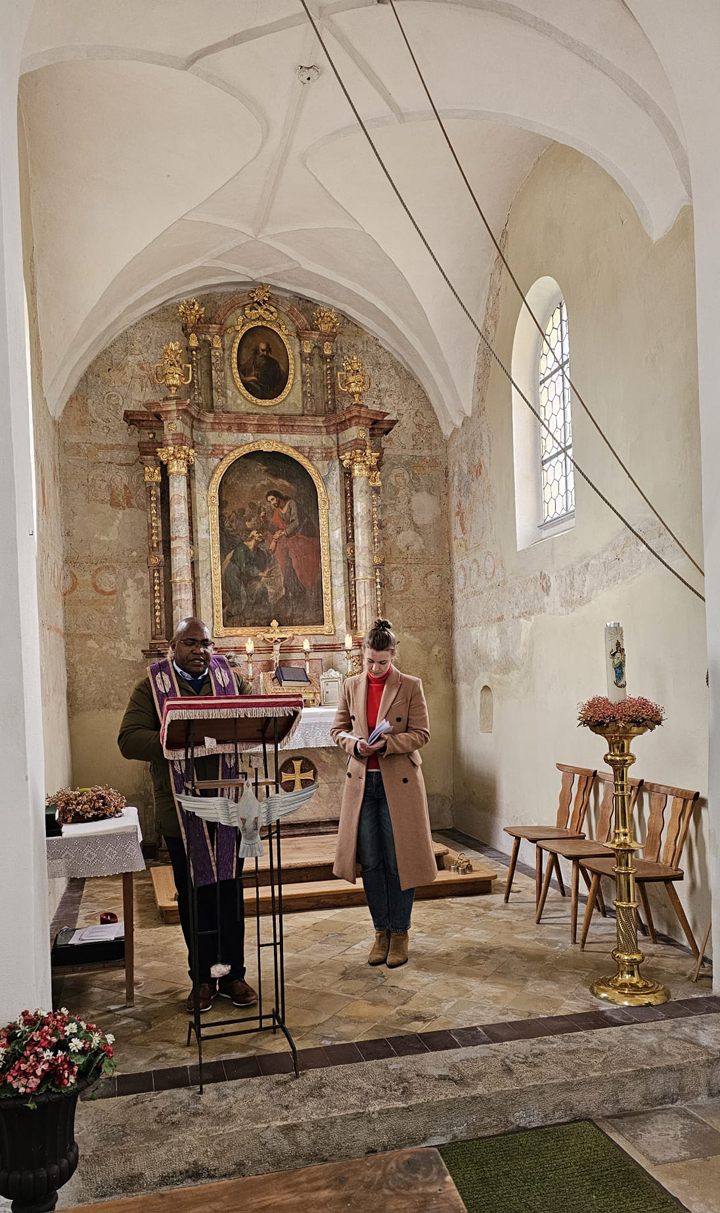 Aufgrund des kalten und unsicheren Wetters wurde der Kreuzweg jedoch kurzfristig direkt in die Kapelle nach Lerchenfeld verlegt - ein ganz besonderer Ort für ein Gebet.