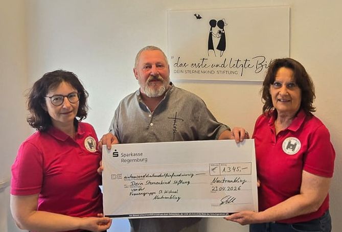 Im Auftrag der Frauengruppe konnte Gabriele Mathes und Monika Schantl am 23.04.2026 einen symbolischen Spendenscheck i.H. v. 1.345,- Euro an die "Stiftung Dein Sternenkind