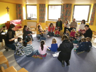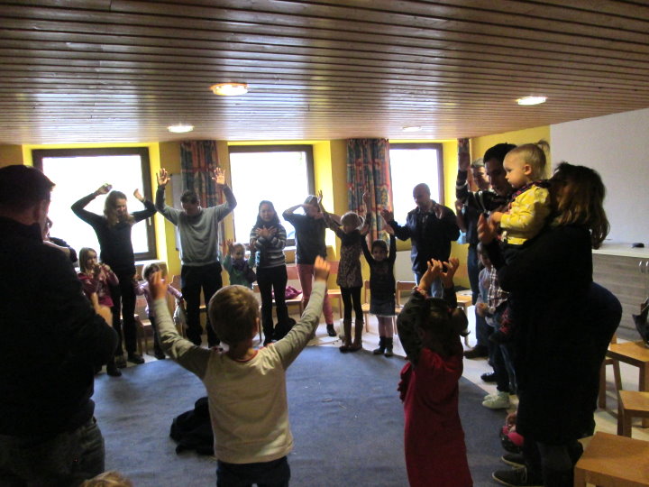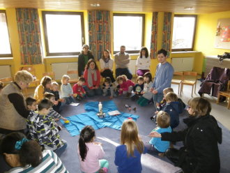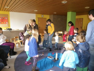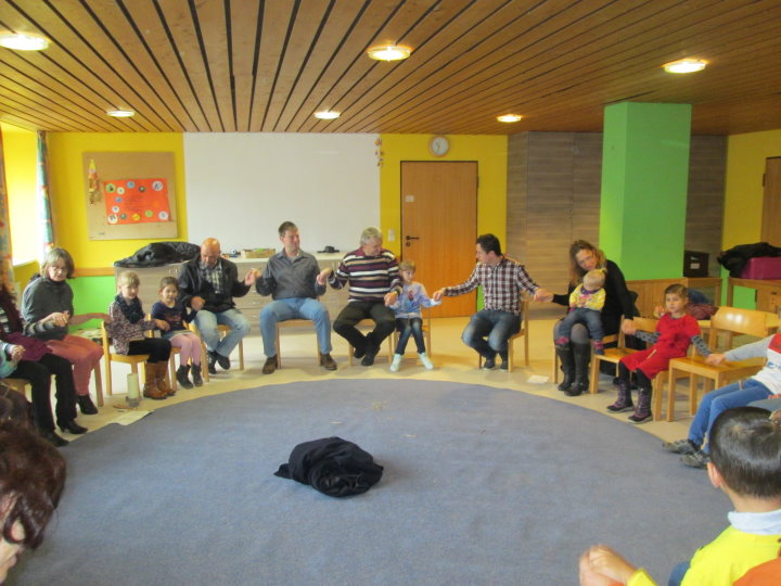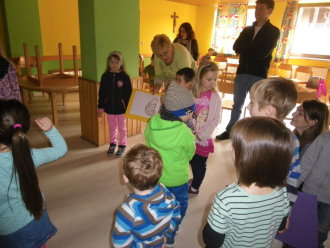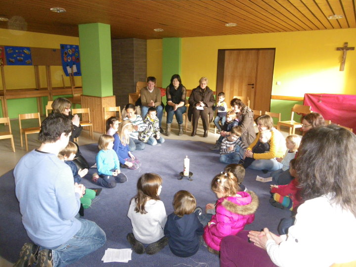 Niemand ist zu klein, um Gemeinschaft, Freude und Hinwendung zu erfahren. Zum Vater-Unser kommen wir zur Messfeier in die Pfarrkirche hinzu. Die Kleinen werden so Schritt für Schritt an den Sonntagsgottesdienst herangeführt und dürfen erleben, dass auch sie Teil der "großen" Kirche sind.