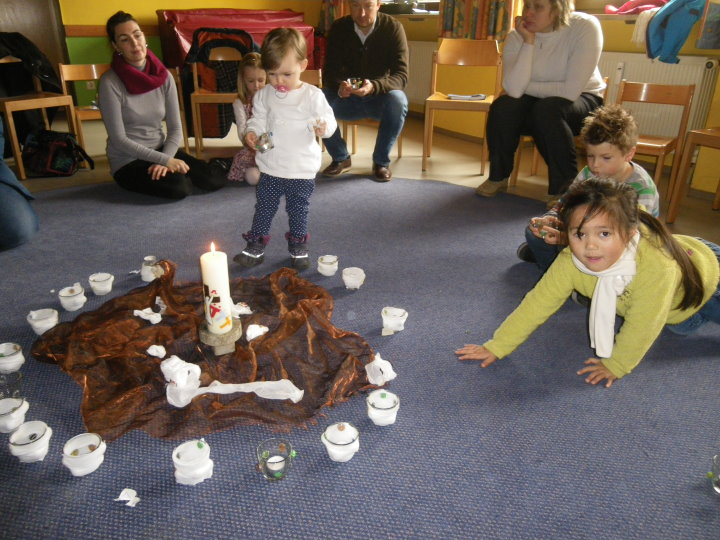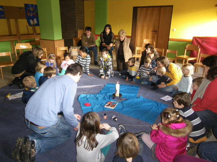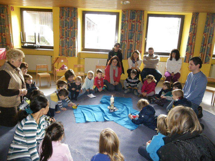 Eingeladen sind alle Babies und kleinen Kinder bis etwa zur Einschulung, mit oder ohne Eltern. Wir feiern das Wort Gottes und erschließen seine Bedeutung für das Leben der Kinder. Dies geschieht abwechslungsreich und altersgemäß durch Singen, Spielen, Bewegung und Gestalten, aber auch durch Staunen und Spüren.