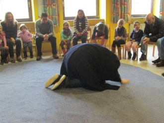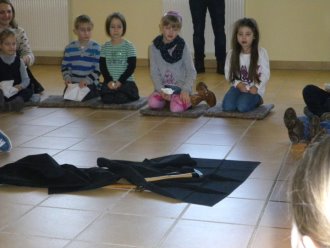 In der letzten Kinderkirche hörten die Kinder vom blinden Bartimäus. Ein zerschlissener, verstaubter Mantel führte sie an dessen Schicksal heran. Sie befühlten dieses Kleidungsstück näher, konnten es anprobieren und dabei die Erfahrung machen, wie sehr der Mantel Bartimäus in seiner Bewegungsfreiheit einschränkte. Tag für Tag saß er da, gebunden an seinen Platz - verdammt zum Betteln auf der Straße, blind um sich tastend. Pastoralreferent Hirschberger stellte dieses Dasein pantomimisch dar. Die Kinder waren eingeladen, die Bibelstelle miteinander szenisch zu gestalten. Im biblischen Spiel machten sie die Erfahrung, wie Jesus die Menschen dazu gebracht hat, ihre ablehnende Haltung Bartimäus gegenüber abzulegen und ihn anders wahrzunehmen. Letztendlich war für Bartimäus nicht das eigentliche Sehen können das herausragende Ereignis. Aus dem Abseits gehörte er wieder mit dazu. Mehr noch, die Menschen ermutigten ihn sogar, zu Jesus zu gehen. In diesem Vertrauen auf Jesus konnte Bartimäus den alten Balast, den Mantel, die Blindheit und schließlich das Bettlerdasein abwerfen. Die Kinder warfen anschließend durch Körpererfahrung und ein getanztes Gebet auch ihre Dinge, Orte, Situationen ab, mit/an denen es ihnen nicht so gut geht und sie sich Veränderung wünschen. Zum Schluss konnten alle in einem Liedruf ihr Vertrauen auf Jesus ausdrücken und den Gottesdienst mit der Gemeinde zu Ende feiern.