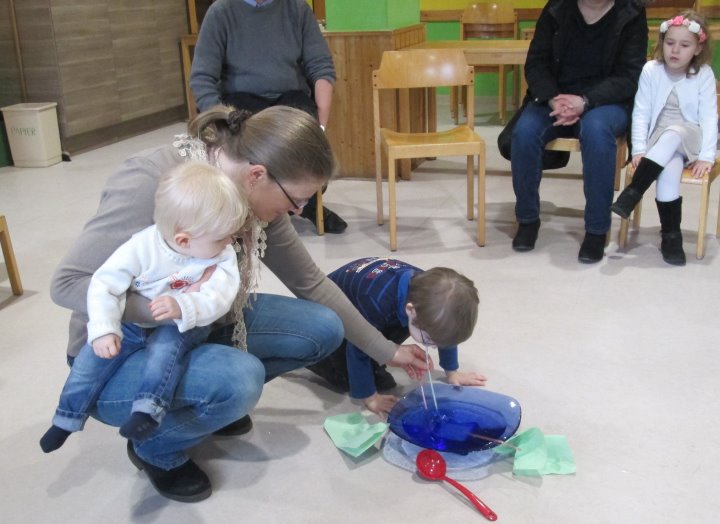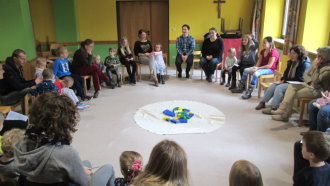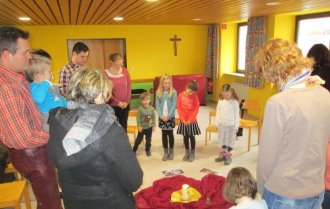 Niemand ist zu klein, um Gemeinschaft, Freude und Hinwendung zu erfahren. Zum Vater-Unser kommen wir zur Messfeier in die Pfarrkirche hinzu. Die Kleinen werden so Schritt für Schritt an den Sonntagsgottesdienst herangeführt und dürfen erleben, dass auch sie Teil der "großen" Kirche sind.
