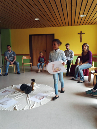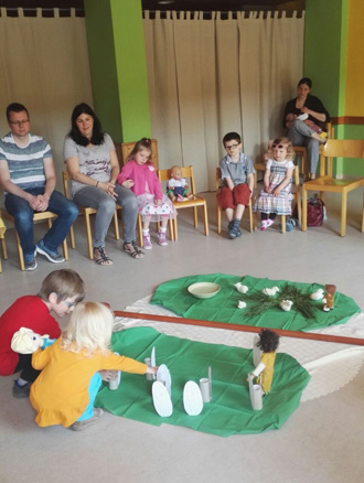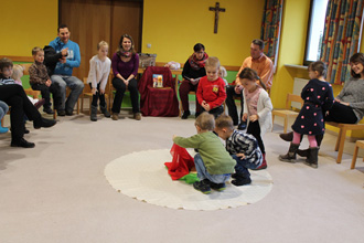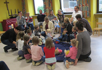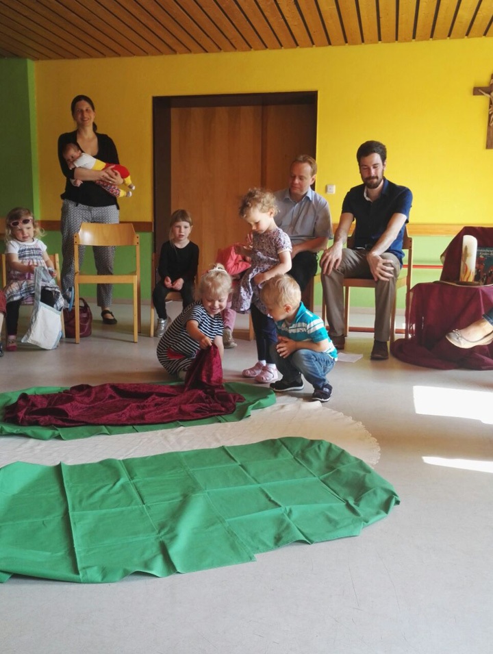 Niemand ist zu klein, um Gemeinschaft, Freude und Hinwendung zu erfahren. Zum Vater-Unser kommen wir zur Messfeier in die Pfarrkirche hinzu. Die Kleinen werden so Schritt für Schritt an den Sonntagsgottesdienst herangeführt und dürfen erleben, dass auch sie Teil der "großen" Kirche sind.