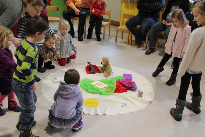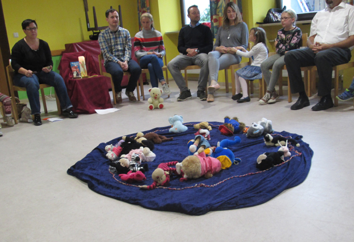 Am Sonntag, den 23. September, fand wieder unsere Kinderkirche statt. 20 Kinder feierten gemeinsam mit ihren Eltern, Opas und Omas einen Gottesdienst zum Thema „Jeder darf dazugehören“. Dazugehören durften am Sonntag auch die Kuscheltiere der Kinder. Mit ihren Kuscheltieren konnten die Kinder die Erfahrung machen, wie schön es ist, wenn man nicht alleine ist, sondern wenn man dazugehören darf. Als Erinnerung an die Botschaft Jesu, dass niemand ausgeschlossen werden soll, bekam jedes Kind ein Armband. Es soll zeigen, dass alle zusammengehören und niemand alleine ist.