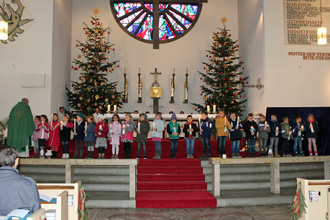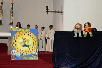 Im gemeinsamen Gespräch erarbeiten wir vorab dessen theologische Aussage und „übersetzen“ es in die heutige Lebenswirklichkeit unserer Kinder-Familien. Dabei möchten wir besonders Kindergarten und Grundschulkinder ansprechen und beziehen dies auch immer wieder aktiv durch Fürbitten, Kyrie-Rufe, Anspiele, Lesungen, stumme Impulse... in den Gottesdienst mit ein. Gestaltung eines Kinderkreuzweges, die Erstkommunion-Gottesdienste und Krippenspiele am Heiligen Abend runden unser Aufgabenfeld ab. Vorkenntnisse müssen keine mitgebracht werden.