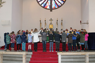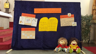 Unser sechsköpfiges Team hat es sich zur Aufgabe gemacht, etwa einmal im Monat eine Familienmesse zu gestalten. Grundlage ist die jeweilige Tagesevangelium-Lesung.