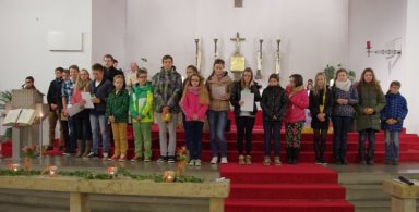 Im Rahmen des Vorabendgottesdienstes am 22.11. wurden 6 Jungen und Mädchen in die Schar der Ministranten aufgenommen. Der Gottesdienst, welcher vom Jugendchor „Gegenwind“ musikalisch umrahmt wurde, stand unter dem Thema „Ihr seid das Licht der Welt“. Im Vorfeld hatten sich die neuen Ministranten zusammen mit ihren Gruppenleitern Melanie Kutzera, Vanessa Riechmann und Noah Stiller überlegt, wie sie als Ministranten Licht sein können.