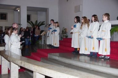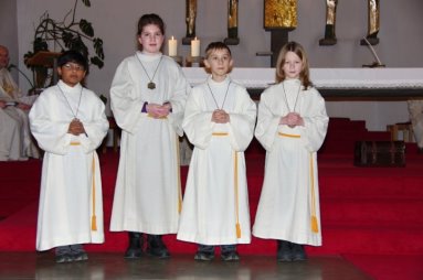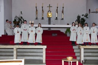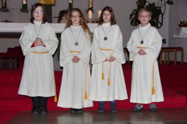 Drei Jungen und fünf Mädchen konnten am 26. Januar 2013 im Rahmen der Vorabendmesse in die Gemeinschaft der Ministranten aufgenommen werden. Seit vielen Wochen hatten sich diese mit ihren Gruppenleiterinnen Steffi Amann und Kathi Scheytt auf ihren Dienst vorbereitet. Die neuen Ministrantinnen und Ministranten sind: