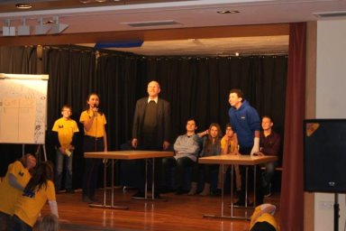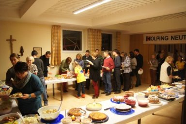 Im Anschluss an den Gottesdienst ging die Feier im Pfarrsaal weiter: Dort wartete auf die Ministranten und ihre Familien ein großes Buffet mit den unterschiedlichsten Köstlichkeiten und ein abwechslungsreiches Programm mit Spielen, Sketchen und selbstgedrehten Kurzfilmen.