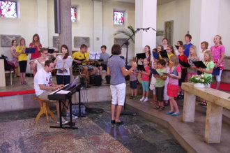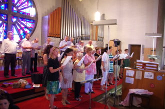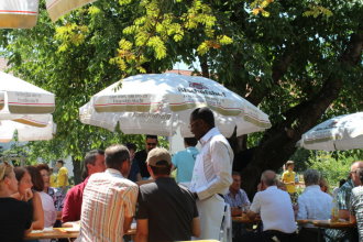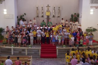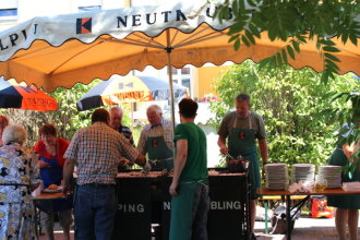 bei strahlendem Wetter und bei bester Laune feierten die Pfarrangehörigen von Neutraubling ihr jährliches Pfarrfest. Nachdem schon alle Chöre der Pfarrgemeinde im Gottesdienst gesungen haben, beteiligten sich alle Gruppen der Pfarrei bei der Organisation und Verköstigung der vielen Pfarrfestbesucher. So wurde wieder neben den bewährten Grillwürstchen und Kaffee und Kuchen ein Putengyros angeboten, das reißenden Absatz fand. Die Ministranten boten ihre selbstgemischten Cocktails und Fruchtspieße an.