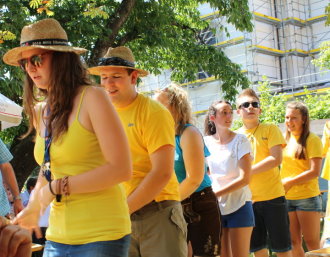 Der Familienkreis kümmerte sich um Aufbau und Abbau der Bänke und Tische und um das Abspülen im Geschirrmobil.