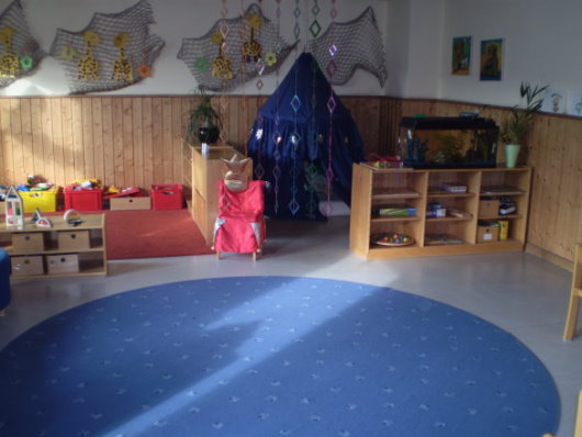 Unser Kindergarten bietet Platz für 50 Kinder im Alter von 3 – 6 Jahren. Sind noch Plätze frei, so nehmen wir auch Kinder unter 3 Jahren auf. Das Personal besteht aus 6 Mitarbeiterinnen und setzt sich aus drei pädagogischen Fachkräften (Erzieherinnen) und 3 pädagogische Ergänzungskräfte (Kinderpflegerinnen) zusammen. Es gibt 2 Stammgruppen (Kleine Strolche und Regenbogengruppe), die sich auf 2 Stockwerke verteilen. Unsere altershomogenen Gruppen (die „Wichtel“= die Kleinen, die „Zwerge“ = die Mittleren und die „Riesen“ = die Großen bzw. die Vorschulkinder) bilden sich täglich in der Zeit von